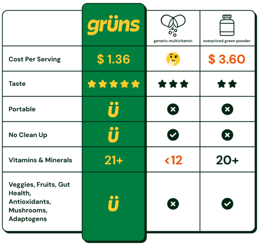 Love Gruns!! I feel healthier! Recommend to friends all the time. Ordered monthly subscription for my daughter who teaches 1st grade. Game changer!